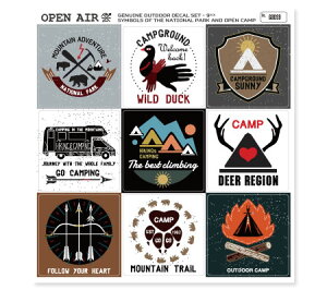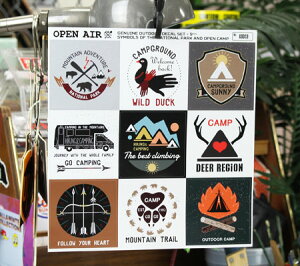 ステッカー アウトドア アメリカン おしゃれ スーツケース 車 バイク かっこいい キャンプ 動物 クマ 鳥 鹿 焚火 OPEN AIR 9Pセット 【メール便OK】_SC-GODS9-AHD