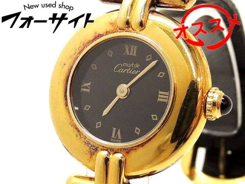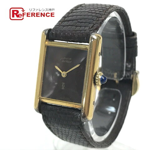 カルティエ マストタンク ヴェルメイユ 5057001 レディース 腕時計 SV925/レザー クォーツ QZ ブラック文字盤 Cartier 【中古】【送料無料】 sb467