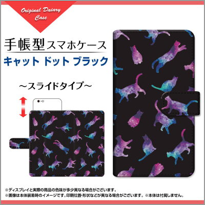 arrows Jアローズ ジェイ格安スマホ手帳型 スライドタイプ スマホカバー ダイアリー型 ブック型キャット ドット ブラック