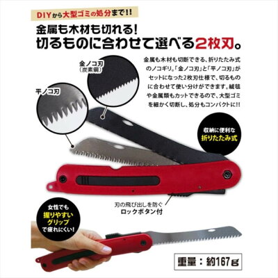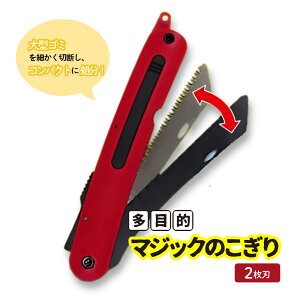 多目的マジックのこぎり 2枚刃 | 折りたたみ式 万能のこぎり コンパクト 多目的 金属 木材 解体 DIY 日曜大工 ノコギリ 鋸 炭素鋼 2丁刃 FM