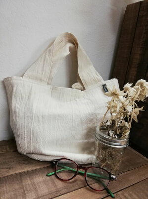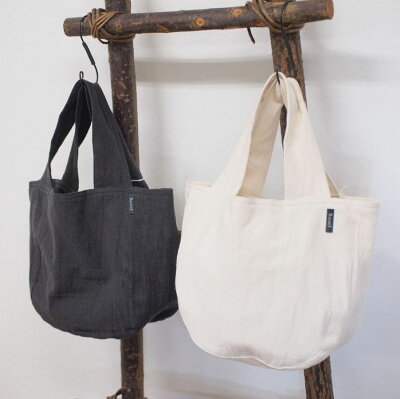 ギフト対応 アトリエヌイのオリジナル生地「ウォッシュドコットン」で作ったバッグ 丸いフォルムと持ち手の幅がカジュアルな印象を与えます。
