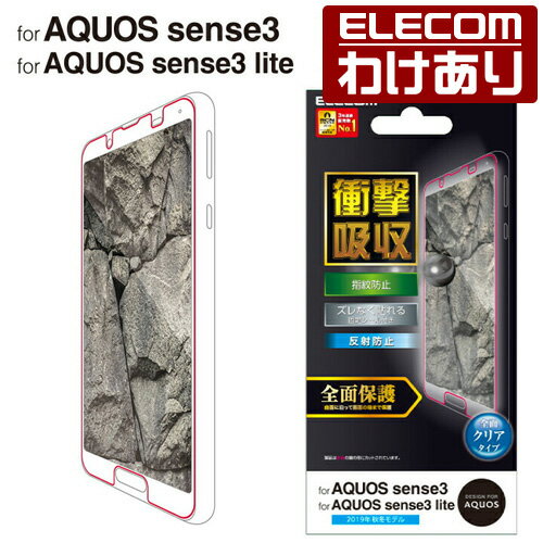 エレコム AQUOS sense3 用 AQUOS sense3 lite 用 フルカバーフィルム アクオス センス 3 センス3 スリー ライト SH-RM12 衝撃吸収 反射防止 透明 指紋防止 フルカバー:PM-AQS3FLFPRN【税込3300円以上で送料無料】[訳あり][エレコムわけありショップ][直営]