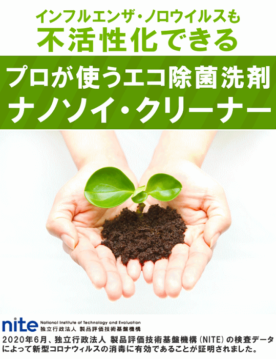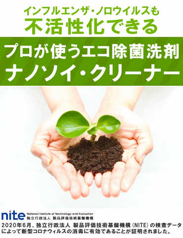 化学物質過敏症やアトピーなど、薬品を使うことに抵抗のある方にオススメなのが、天然の大豆成分だけで作られた、人・環境に優しい天然洗剤のナノソイクリーナーシリーズ「水まわり掃除全般用」。