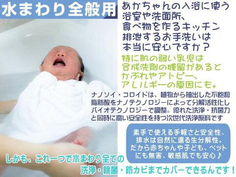 天然洗剤 除菌掃除 エコ洗剤 万能洗剤 界面活性剤ゼロ 無添加 乳児 ベビー 赤ちゃん アトピー アレルギー対応 キッチン洗剤 お風呂掃除 お風呂 洗剤 浴槽洗剤 トイレ洗剤 【ナノソイクリーナー水まわり掃除用 詰め替え2L】